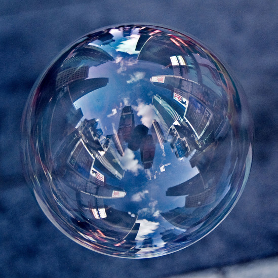 Um fotógrafo americano chamado Tom Storm resolveu ver o mundo de uma forma diferente, de uma maneira bastante incomum: através do reflexo delas em bolhas de sabão. Tom desenvolveu esta técnica numa viagem que fez em 2006 à cidade de Galway, na Irlanda, onde fotografou uma bolha de sabão e percebeu nela aimagem refletida do ambiente ao seu redor. Desde então ele registra cada uma de suas viagens pelo mundonuma bolha, e nessa lista estão os prédios de Times Square, em Nova Iorque, o fiorde Geiranger, na Noruega, o portão de Brandemburgo, em Berlim, e muito mais. Mas a brincadeira não é nada fácil. Para conseguir boas imagens ele precisa tirar centenas de fotos. E Tom afirma que suas fotos são totalmente naturais, sem nenhum tipo de edição.